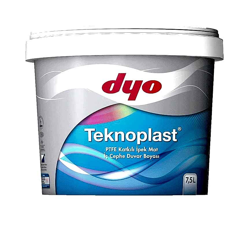 Tanım : Dyo Teknoplast akrilik emülsiyon esaslı, PTFE katkılı, ipek mat, silinebilir, dekoratif iç cephe son kat boyasıdır.